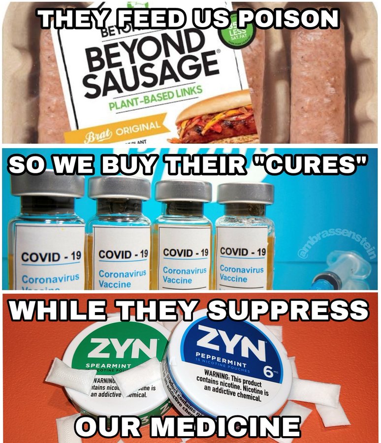 F. Billy McMorris @FBillMcMorris: “Zyn/vapes/et al are the definition of controlled opposition. Smoke or don’t, nerds” -- Hey, Chuck, leave the Zyn alone. From the uproar in my own family, I promise this is not the road any political party wants to go down.