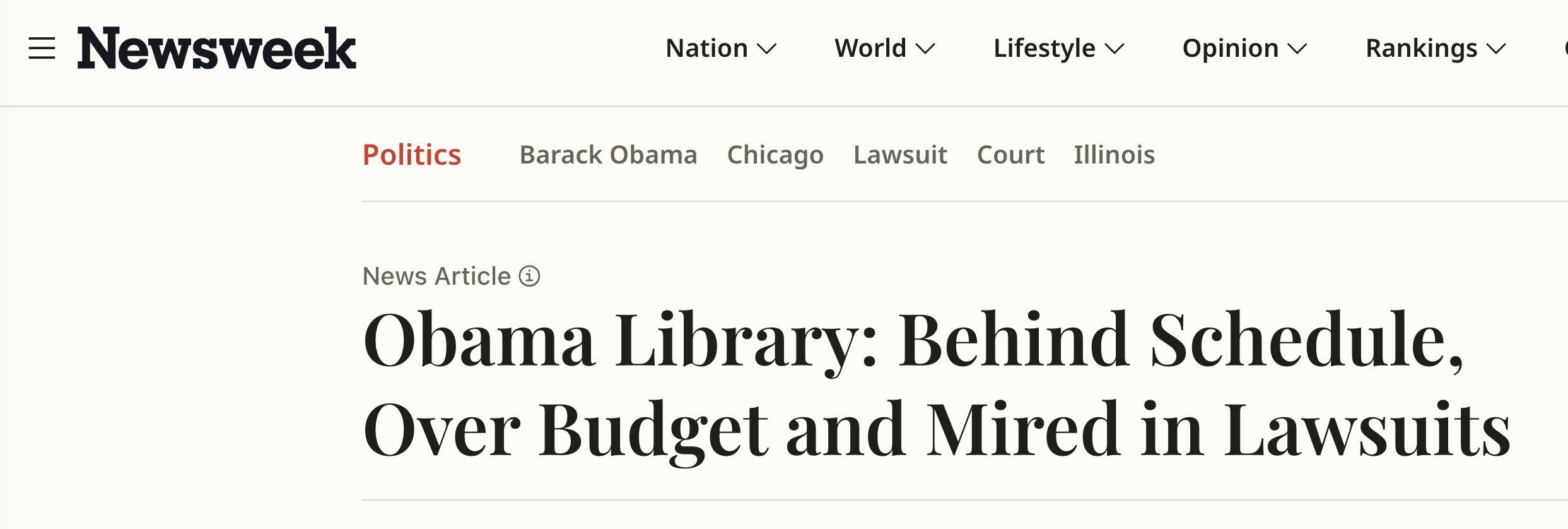 Posted • October 19, 2025: I don't know if you've seen anything about Barack Obama's presidential center. But if you didn't, he posted about it on Saturday. —— Barack Obama @BarackObama: “When the Obama Presidential Center opens next year, it will be a hub for change — a place for people from all over the world to come together, get inspired, and take what they learn back to their own communities.” —— It's been a boondoggle now for some time. It is, in fact, the perfect representation of Barack Obama. Here's a Newsweek headline on the project: "Behind Schedule, Over Budget, and Mired in Lawsuits." https://pbs.twimg.com/media/G3pvwSbWsAA8exF?format=jpg&name=4096x4096 —— The local community was also unhappy with it or had concerns. The Obama Center – which has faced years of delays and lawsuits since breaking ground in September 2021 – will cover nearly 20 acres of the 540-acre Jackson Park and feature a museum, public library branch, athletic center, gardens and children’s play area.