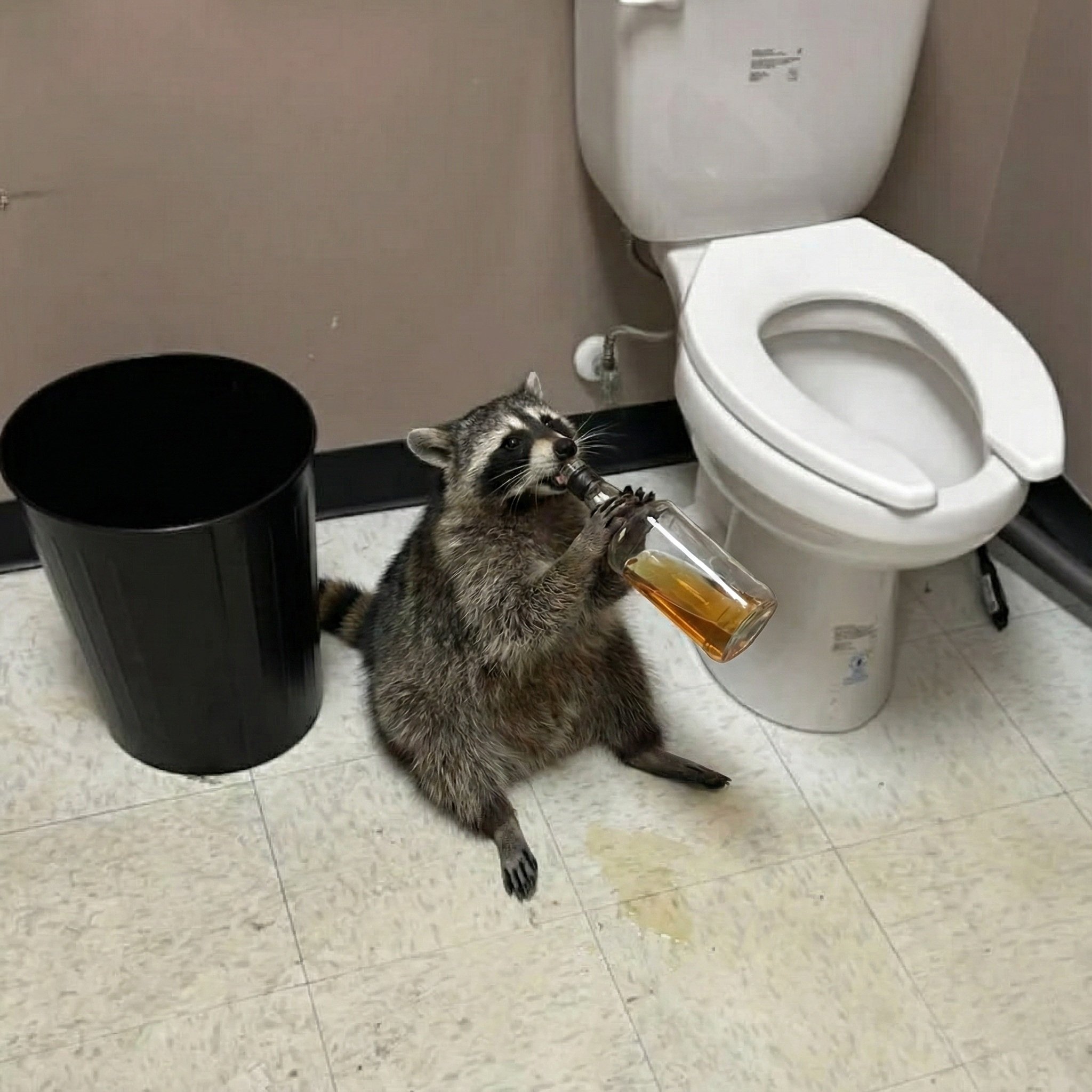 Posted • December 3, 2025: A rowdy raccoon recently went on a bender in a Virginia liquor store. The masked beer bandit got drunk as a skunk and then passed out on the restroom floor. Here’s more background on this conked-out critter. A local news station got hold of some pics from the chaotic scene. —— Raccoon gets drunk at an ABC liquor store in Ashland, Virginia, and passes out in the bathroom. Hanover County Animal Protection says the raccoon "ransacked" the store before passing out next to the toilet. "Officer Martin safely secured our masked bandit and transported him back to the shelter to sober up before questioning," Hanover County Animal Protection and Shelter said in a statement. "After a few hours of sleep and zero signs of injury (other than maybe a hangover and poor life choices), he was safely released back to the wild, hopefully having learned that breaking and entering is not the answer." —— Rocket at it again… https://pbs.twimg.com/media/G7NHK8_WMAAvPoS?format=jpg&name=900x900